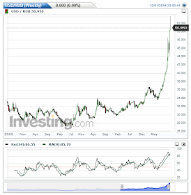 Sokan hitték azt, hogy a szankciók nem tudják megállítani Putyint. Ha a szankciók nem is, az olajárának csökkenése igen, kombinálva a szankciókkal kemény feladat elé állította az orosz diktátort. A részvénypiacokon valamiféle 3. hullám zuhan délre, a rubel dollár kereszt esetében pedig parabola alakult ki, melynek még nincs vége....